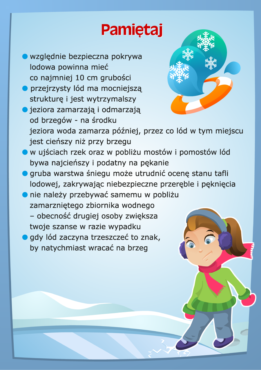 Warto zapoznać się z ich treścią, żeby być świadomym zagrożeń jakie niesie zabawa na zamarzniętym jeziorze oraz żeby wiedzieć jak postępować gdy sami wpadniemy do wody lub gdy niesiemy pomoc osobie pod którą załamał się lód.